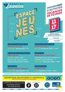 Programme des activités proposées par le service jeunesse pendant les vacances de février