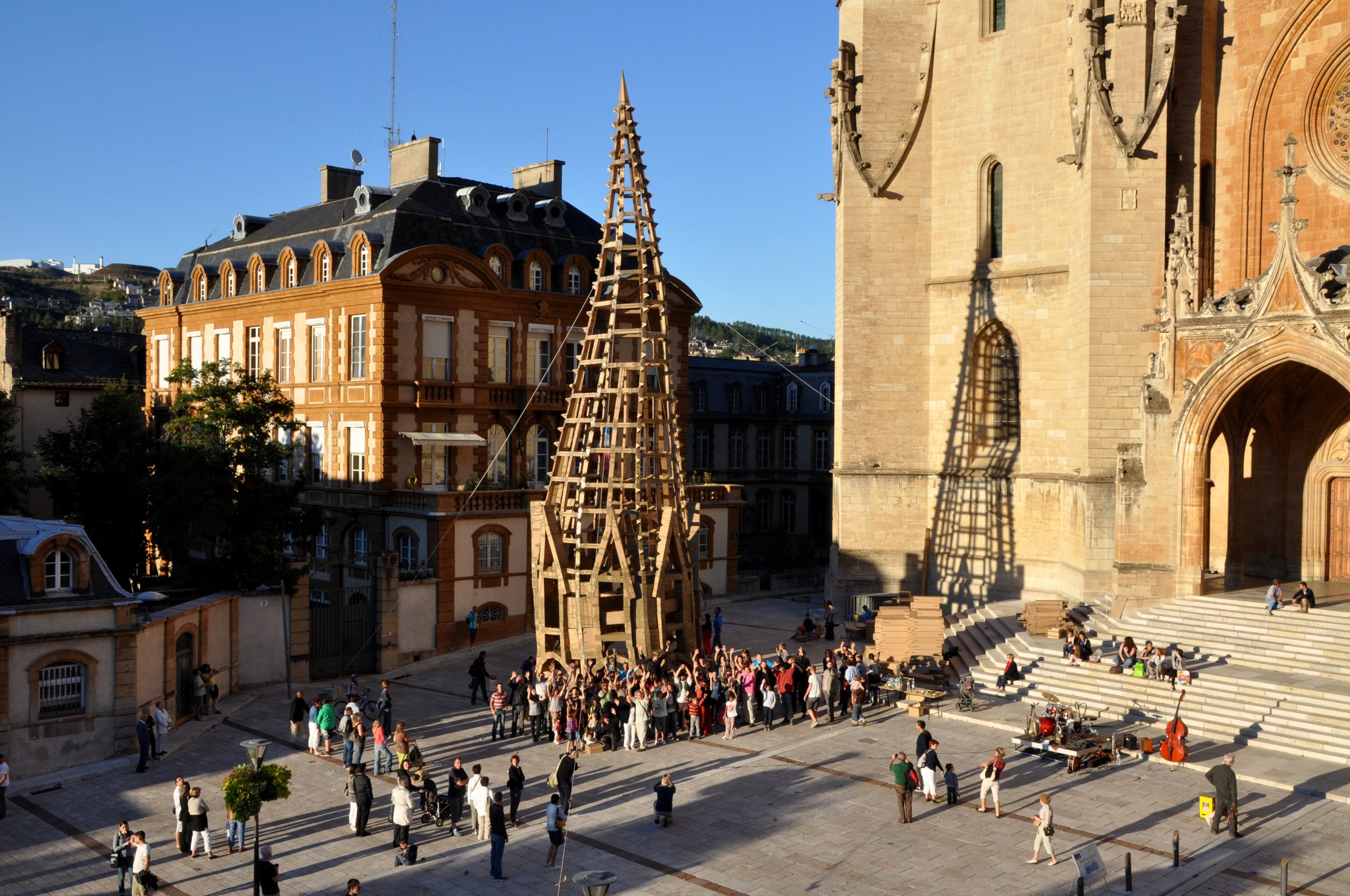 Journées européennes du patrimoine 2012, Un clocher en carton, construction participative avec le plasticien Olivier Grossetête - © Jean-Christian Garlenc, Pays d’art et d’histoire